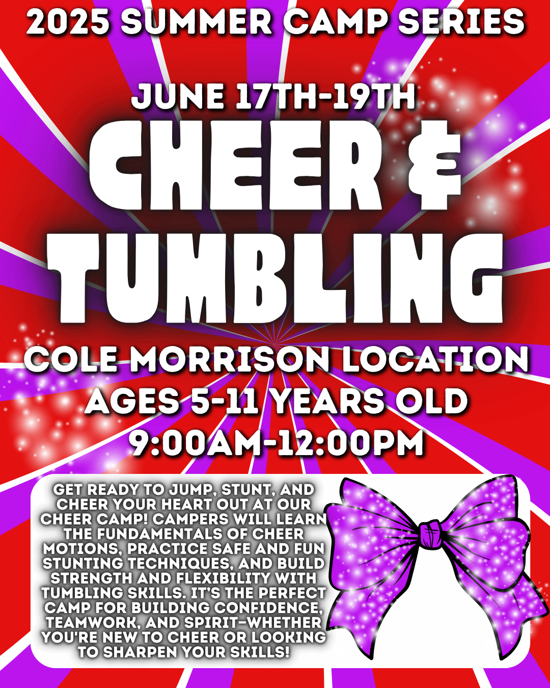 Improve your tumbling skills and learn all about cheer while making new friends!